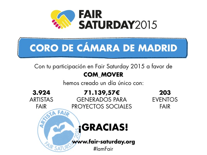 Fair Saturday es un movimiento global de carácter cultural y social desarrollado por artistas y organizaciones culturales que actúan masivamente el último sábado de noviembre de cada año apoyando con cada evento a una ONG o proyecto social.